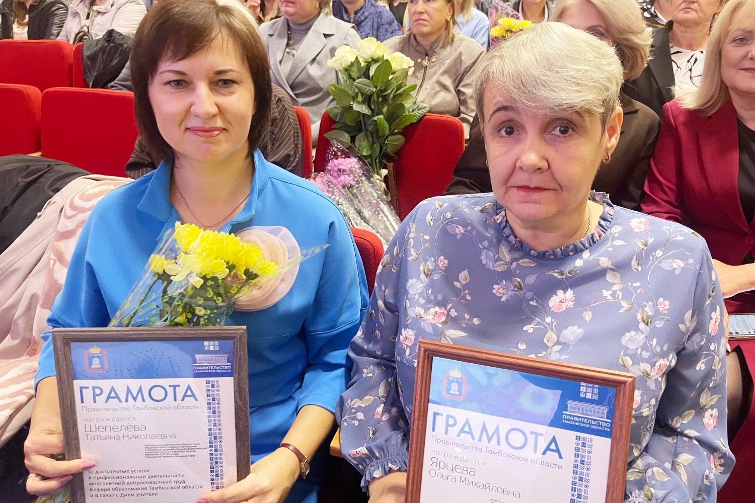 Знаком уважения работы педагогов является вручение заслуженных наград различного уровня за успехи в обучении и воспитании подрастающего поколения. В этот день учителям, работникам дошкольных учреждений и педагогам дополнительного образования вручили Грамоты Правительства Тамбовской области, Почётные грамоты Министерства образования и науки региона, администрации Сосновского округа и Совета депутатов округа, профсоюза работников образования и науки, а также благодарственные письма Совета депутатов и администрации округа, Мичуринской и Моршанской Епархии.
